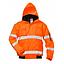 NITRAS MOTION TEX VIZ, Warnschutz-Pilotenjacke, neonorange / marineblau, 300 g/qm, angenehmer Tragekomfort dank weichem Fleece-Stehkragen, verstellbare Ärmelabschlüsse mit Klettverschluss zur Fixierung, umlaufende Reflexstreifen für besonders gute Sichtbarkeit, durchgängiger Reißverschluss mit Windstopper außen, je zwei Brust- und Seitentaschen (mit innenliegender Schlaufe für Ausweishüllen), Smartphone-, Ärmel-, und Innentasche, einrollbare Kapuze zum Schutz gegen Regen, innenliegender Zugang am Rücken für Veredelungen, Regular Fit